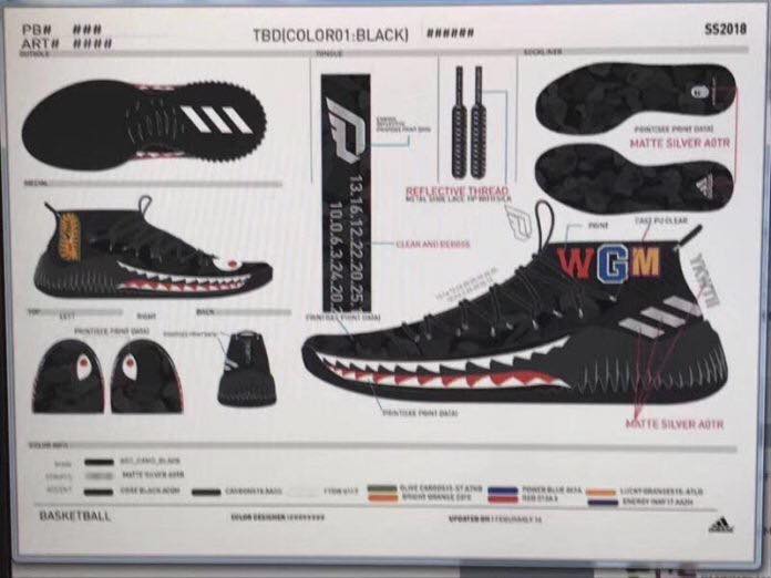 Si les chaussures pro-model « Dame » s’enchaînent, une version bien spécifique de la Dame 4 pourrait apparaître en 2018 selon le site Yeezy Mafia. Ce site d’infos sur les grosses sorties Adidas a dévoilé deux mock-up de cette paire. Une black camo et une green-camo, reprenant les visuels des Bape Shark Hoodies (dents de requin, sigle « WGM »…).