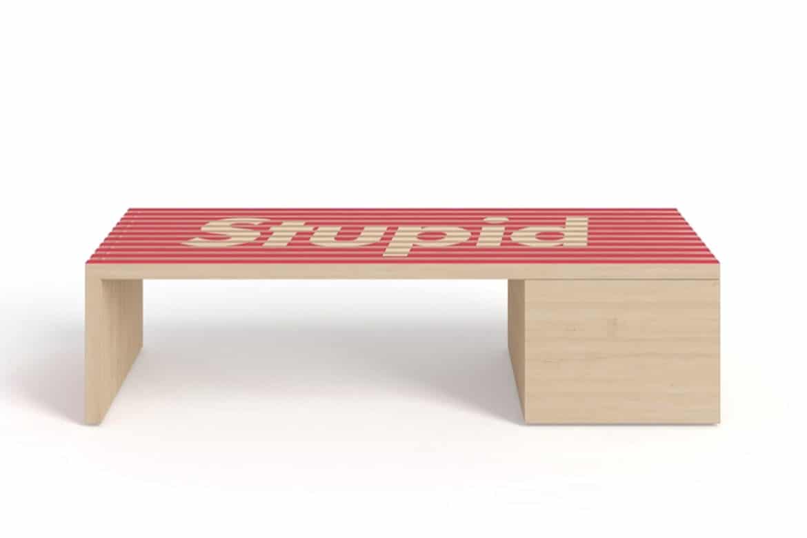 Parce que lui-aussi a compris que les marques streetwear arboraient une popularité à toute épreuve, Dann Brunn a imaginé une collection « street », et c’est plutôt le cas de le dire. Il a en effet confectionné une série de bancs, bariolés des couleurs et des logos de Supreme, BAPE ou Anti-Social Social Club.