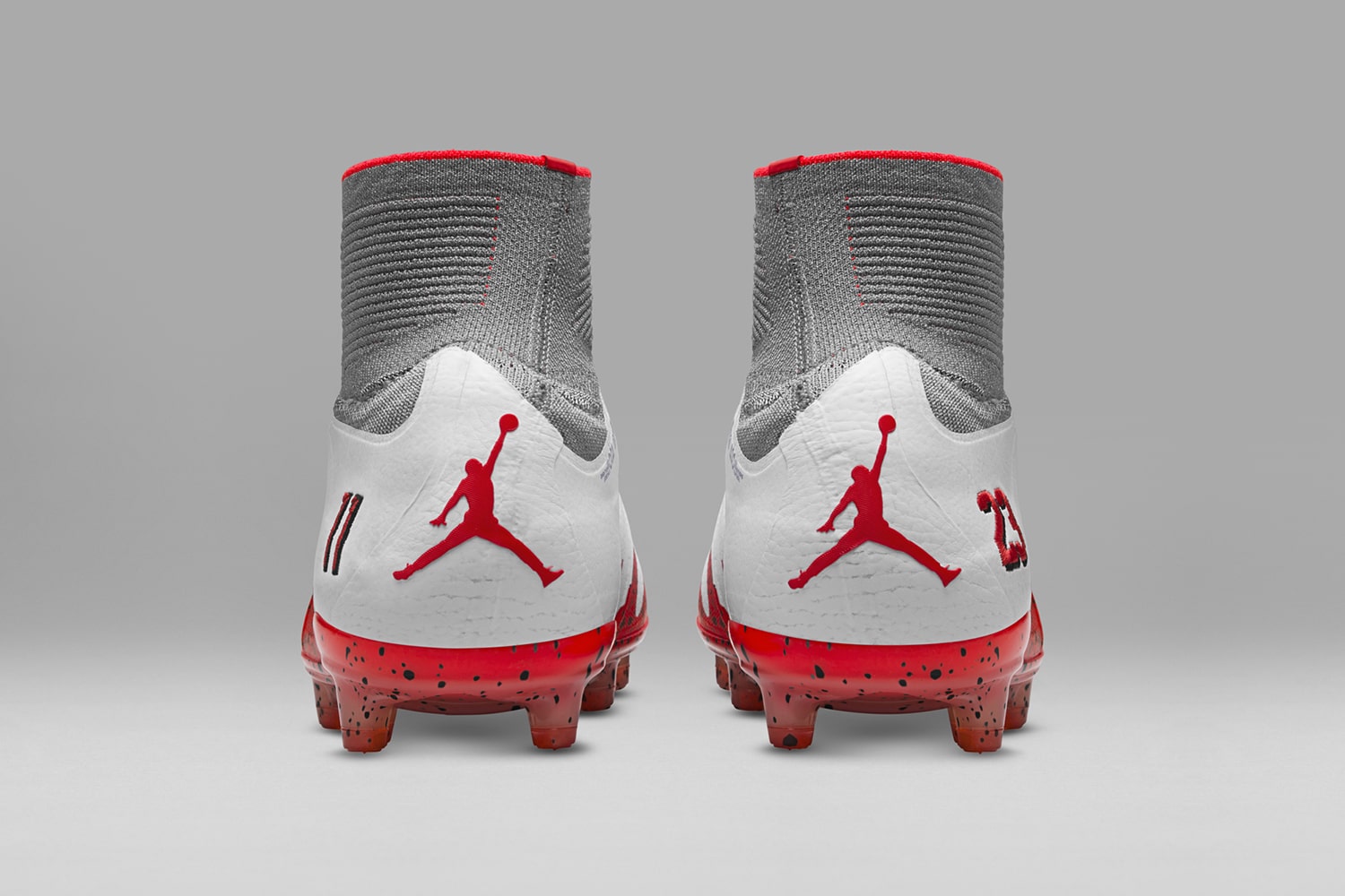 Sur la paire désormais blanche et rouge, les numéros 11 et 23 sont également visibles, respectivement sur la chaussure gauche et droite. Le tout est complété par le célèbre saut de Jordan sur le talon. Les initiales du joueur et le drapeau brésilien figurent de plus sur les lacets.