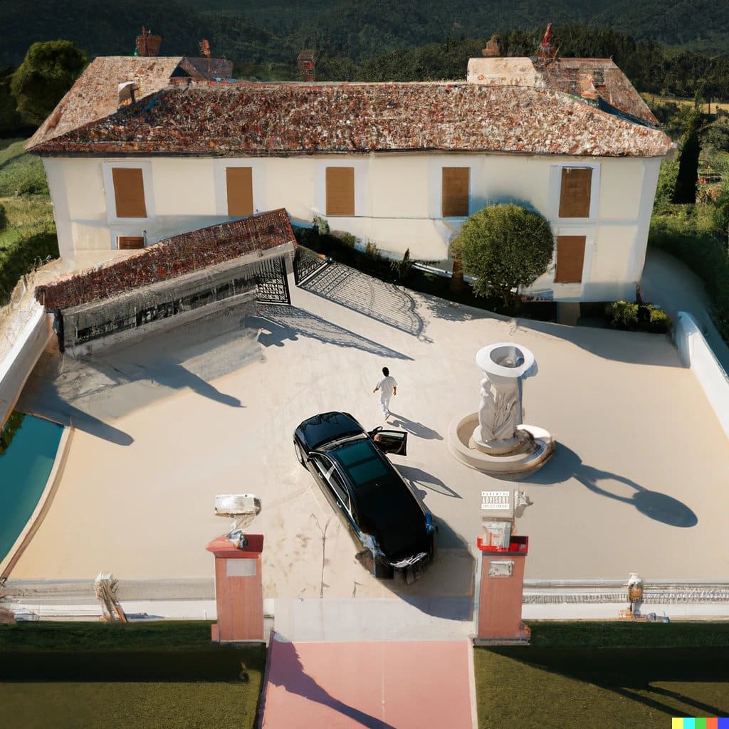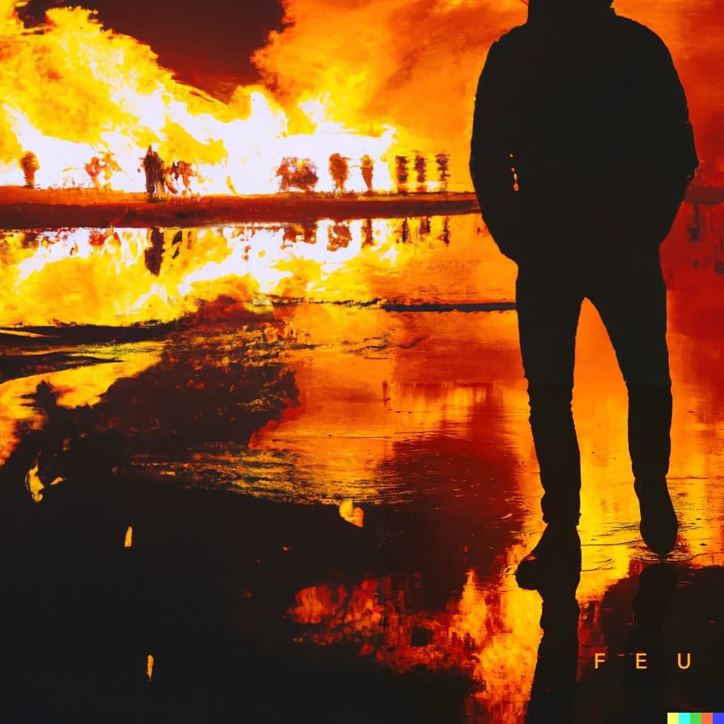 On a donc essayé avec quelques pochettes du rap français. Souvent, le résultat proposé par l’application est stupéfiant. Elle prolonge, en outre, les formes de la cover originale en plus de reproduire son ton et son style. La pochette de JVLIVS II de SCH, par exemple, reproduit parfaitement l’environnement d’un port marseillais. Même constat pour Feu de Nekfeu, où l’IA prolonge la silhouette aperçue. La plus impressionnante reste probablement LAÏLA de Khali, puisque l’IA a respecté avec une précision bluffante le style de l’artiste.