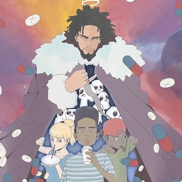 Si vous êtes fans de manga ou d’animé ainsi que de rap, cet artiste risque sans doute de vous plaire. Celui-ci réalise le crossover le plus improbable de tout les temps, en réunissant les deux mondes en une seule illustration. Parti à l’origine d’une série de portraits de rappeurs US transformés en personnages de Naruto, Dotnova a depuis affiné sa maîtrise de la technique en reproduisant cette idée sous diverses formes.